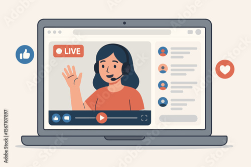 Live streaming app with online teacher on mobile phone screen, vector flat illustration. Online courses, training, remote teaching, e-learning, distance education.