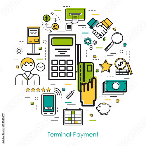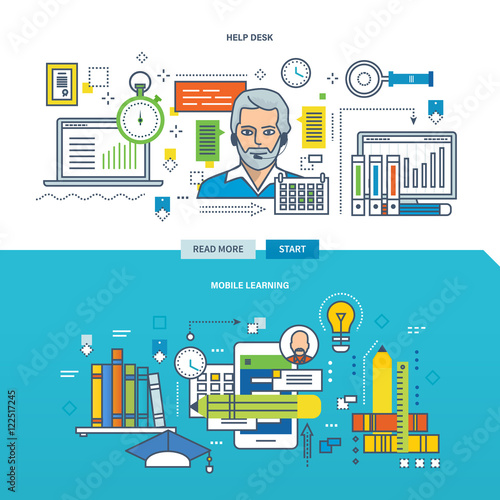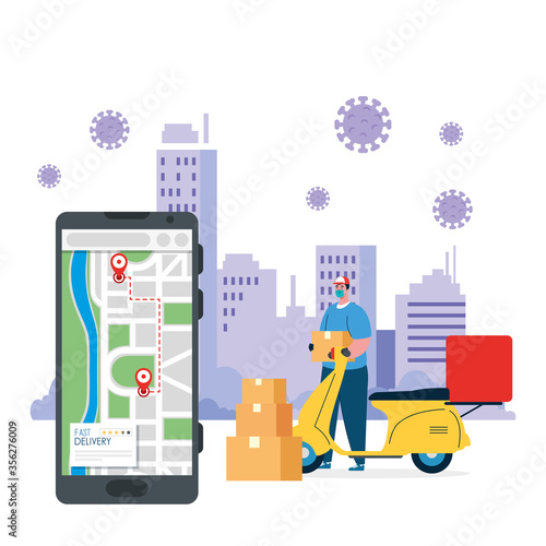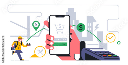 Professional moving and delivery company loader services concept vector illustration. Micro male and female characters loading cardboard boxes on huge cargo trolley, cart or loader.