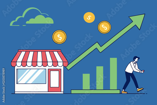 Local market, vector flat style design illustration. Seller or farmer female character selling natural organic fruit and vegetables to shopper young woman. Healthy fresh organic food.