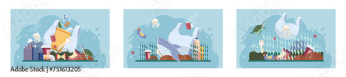 Logging landing page design, website banner template set, flat vector illustration. Logger, lumberjack, woodcutter characters cutting trees with chainsaw. Forestry. Wood or lumber industry.