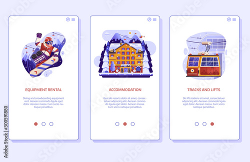 Logistics, Warehouse and Delivery mobile app onboarding screens. Menu banner vector template for website and application development. Online delivery service, order tracking, warehousing.