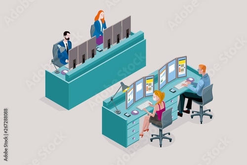 Lost baggage vector website template, landing page design for website and mobile site development. Isometric scared people travelers waiting for lost luggage. Baggage carousel, conveyor belt.