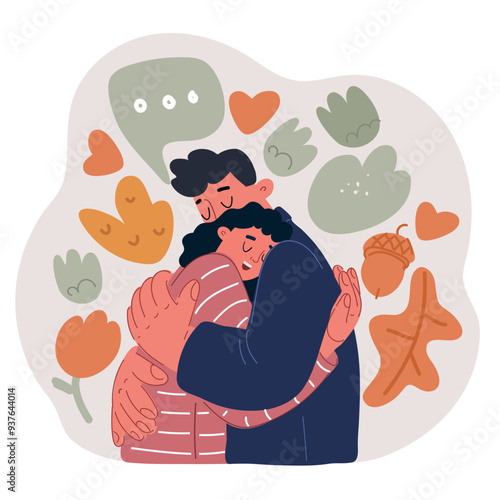 Love reconciliation vector. Flat happy couple repair torn heart cartoon illustration. Renewal of relationship, family psychotherapy concept