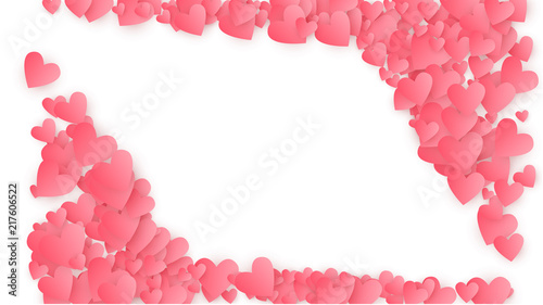 Love word made of beautiful paper cut pink flowers and hearts. Romantic floral greeting card, invitation design. Vector illustration in paper art style. Love stylized typography banner template.