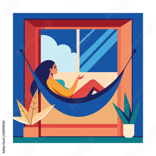 Loving couple in hammock vector. Young man and woman romantic dating illustration. Travel vacation on holiday, love relationships and honeymoon concept