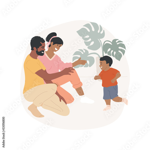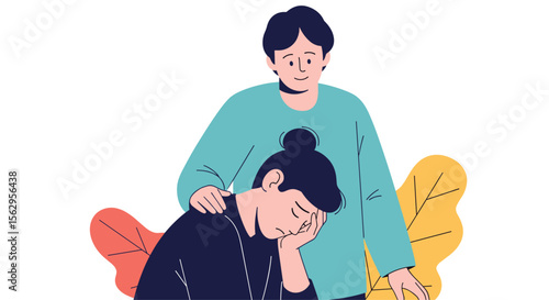 Loving father supporting crying daughter sitting on parent knees vector illustration isolated on white background. Nice conversation, parent and child communication concept