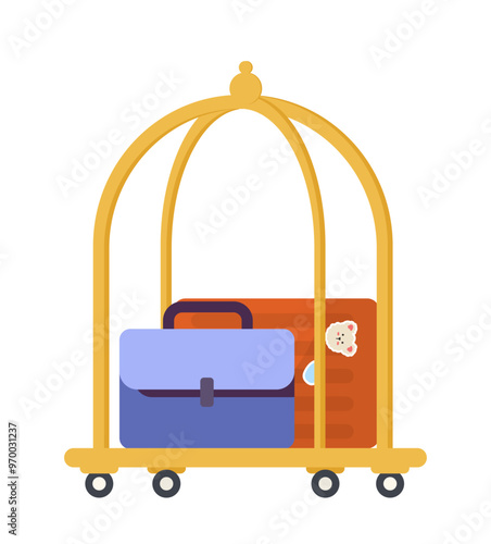 Luggage trolley cart icon. Vector hotel service. Suitcase baggage travel bag transportation