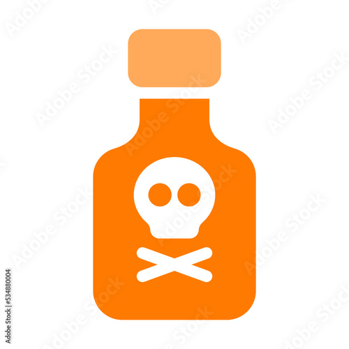 Poison bottle vector. Magic poisonous potion icon. Cartoon flask with toxic wizard liquid. Halloween glass jar with danger substance isolated on white background