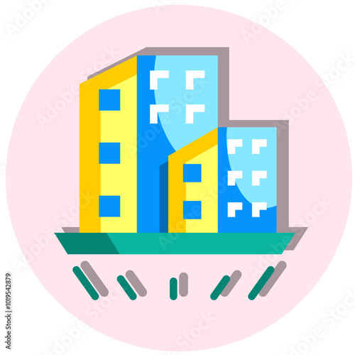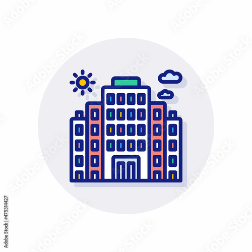 Magnifying glass with city elements inside, vector illustration in paper art style. Search for house, real estate concept.