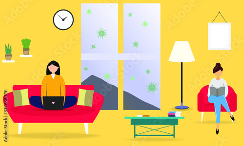Vector illustration of man bandaging injured arm of sitting on the floor man. First aid at home, maim concept design element in flat style.