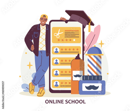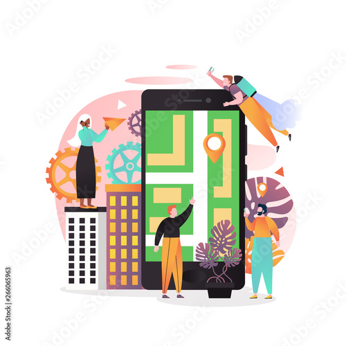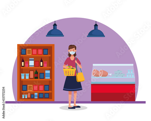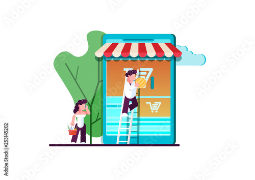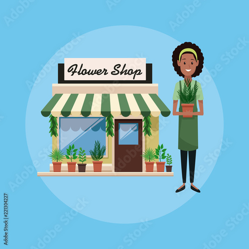 Vector illustration of coffee house worker female making coffee. Coffee shop interior with commercial espresso coffee automatic machine. Flat style design.