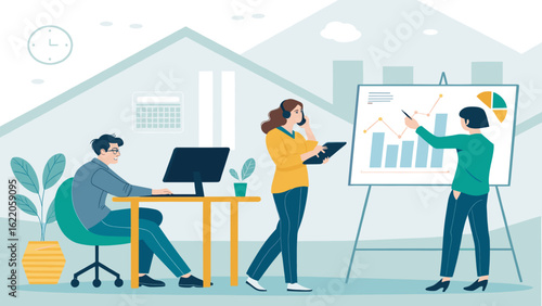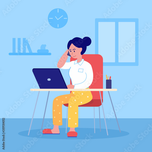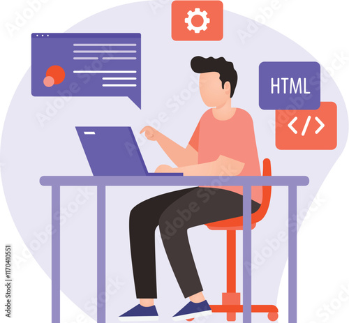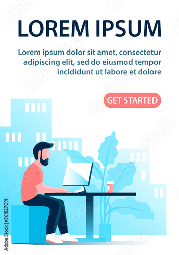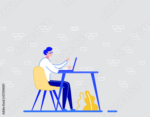 Male freelancer working remotely from his room. Freelance concept vector illustration in flat style design. Home office workplace. Online shopping.