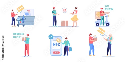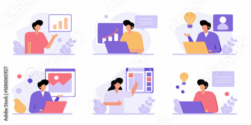 Man and woman characters clean home and do household work. Vector illustration set of people cleaning house, dusting, washing clothes. Housework, laundry, washing machine.