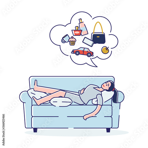 Man dreaming in sofa couch vector icon isolated on white background