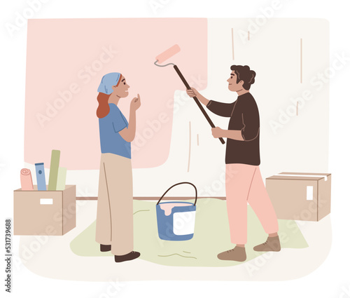 Man dusting furniture in living room, flat vector illustration. Housework, household chores, housekeeping, house cleaning.