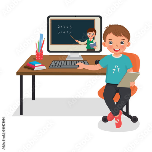 Man in panic because of computer error. Happy family and cat at home in front of computer. Concept illustration. Vector web site design template. Landing page website illustration.