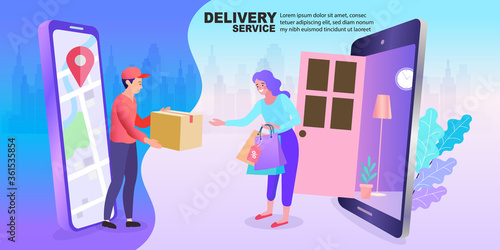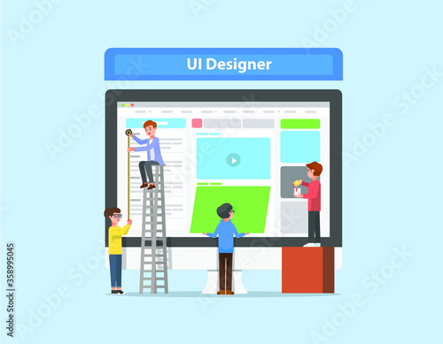 Man looks outside window and see city advertising billboard. Newspaper sale ads, print media marketing and advertisement. Concept illustration. Vector web site design template. Landing page website.