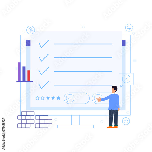 Man making life choice standing in front of yes and no direction road signs, flat vector illustration. Life changing decision.
