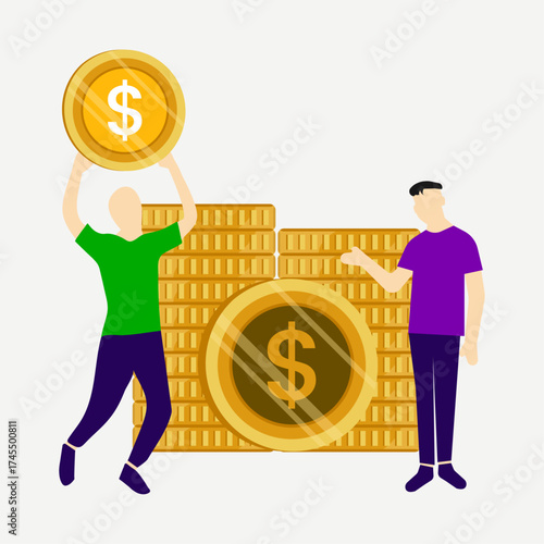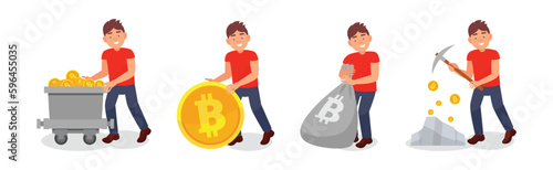 Business man miner with bitcoin vector icon isolated on white background. Cryptocurrency wallet, mining and investment concept