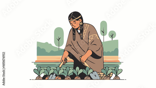 Man packing trekking equipment in backpack vector icon isolated on white background