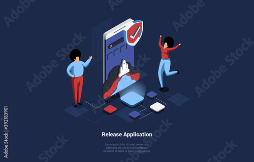 Young man playing virtual reality arcade game, flat vector isometric illustration. Game club, room, zone attractions, fun activities, entertainment. Arcade gaming.