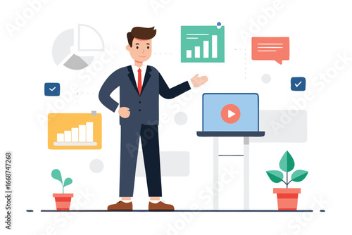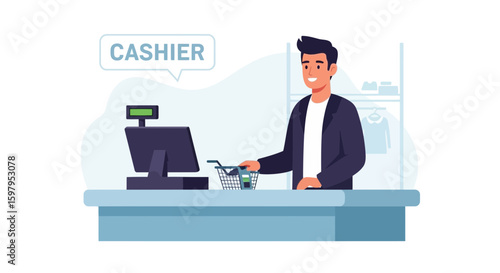 Young man singing karaoke. Vector illustration in flat style. Music, performing arts hobby concept design element.