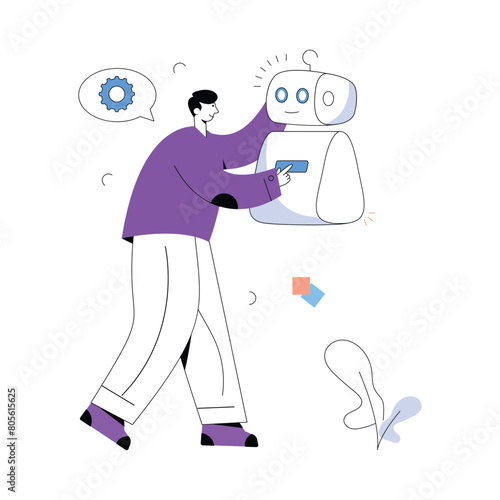 Man walking dog vector. Male character picking up poop using special bag. Cleanup after pet defecation in park or city street. Take care of animal and ecology environment concept
