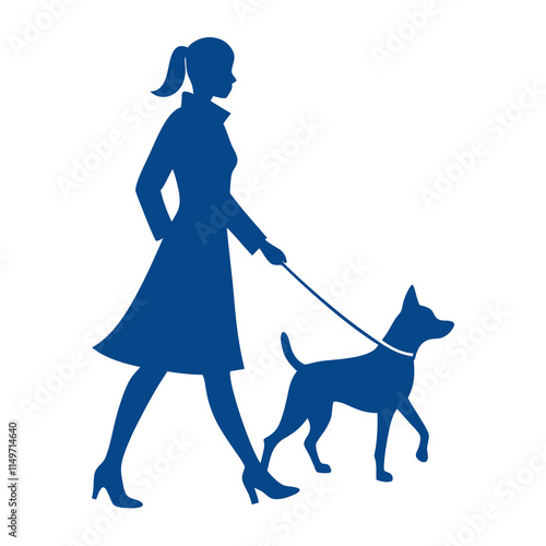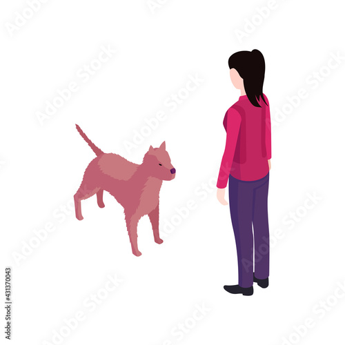 Man walking dog on leash vector. Pet lover icon. Owner puppy isolated on white background