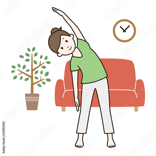 Man washing floor with mop, flat vector illustration. Housework, house cleaning, housekeeping, household chores.