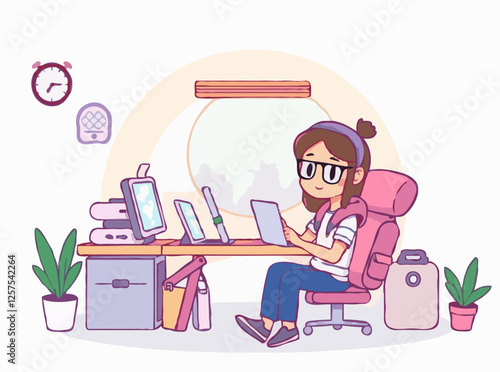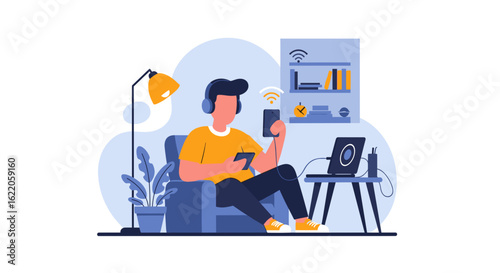 Man wearing glass helmet with respiratory system. Air pollution and covid virus protection. Vector illustration. Breathe fresh air concept.