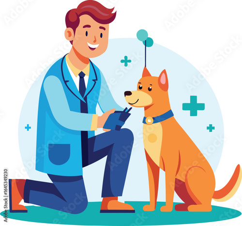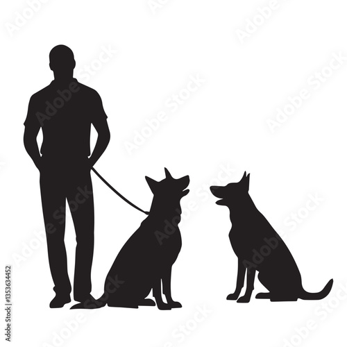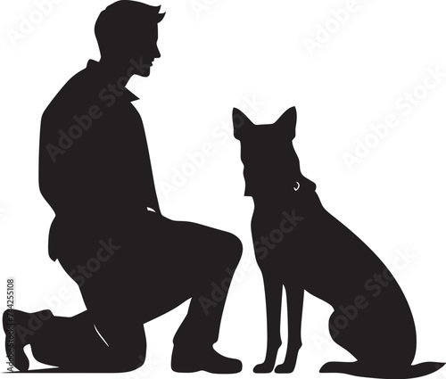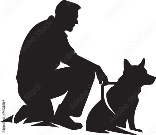 Man with dog vector. Pet lover icon. Puppy owner isolated on white background