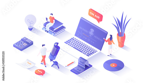 5g cellular network. Man working on laptop, transferring data, testing new high speed internet while sitting on router, flat vector isometric illustration. 5g new generation of wireless technology.