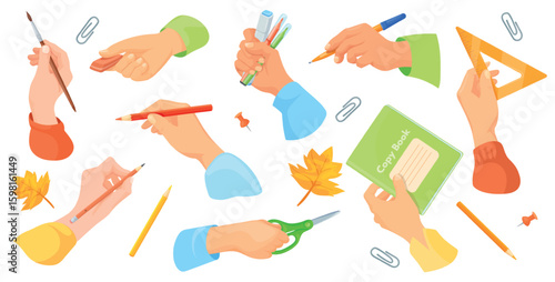 Hand manicure set, vector isolated illustration. Hands and nails beauty treatment, hygiene. Manicure tools and accessories. Nail art studio, spa salon services.