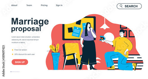 Marketing team work on business strategy. People work in office, teamwork communication. Vector web site design template. Landing page website concept illustration.