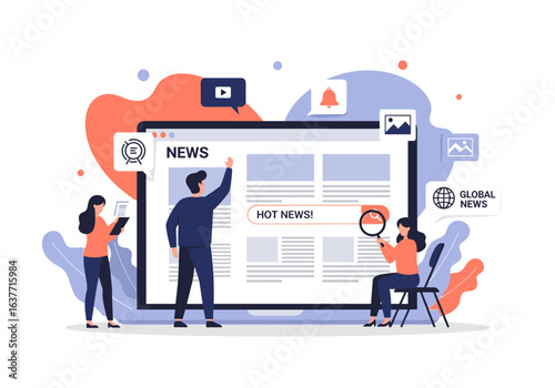 Math class, vector flat style design illustration. Tiny characters doing sums using big calculator, mathematical formulas. Mathematics science, education concept for web banner, website page etc.