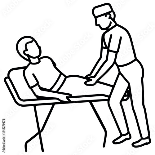 Medial worker giving crutch to homeless person, donation vector icon isolated on white background