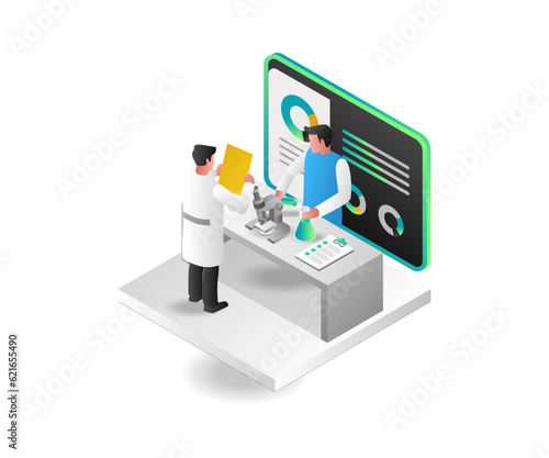 3d bioprinting process of human organs, vector flat illustration. Isometric medical 3d bioprinter creating printed kidneys for transplant. 3D kidney biomanufacturing concept.
