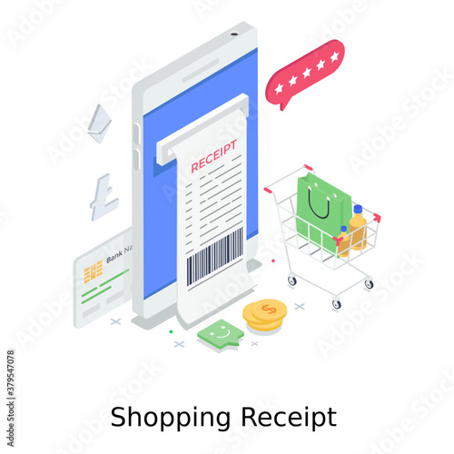 Medical insurance online vector illustration. Smartphone with insurance policy, shield, medicine items, finger tapping buy button. Isometric composition for poster, banner, website page, etc.
