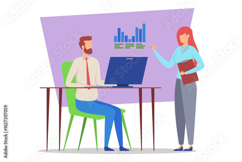 Medical prescription, vector flat style design illustration. Doctor female giving prescription to her patient after medical examination. Medicine and healthcare concept for web banner, website page.