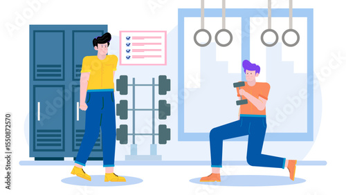 Fluoroscopy exam in hospital, clinic, flat vector illustration. Patient woman lying on medical table, xray machine taking image of broken leg, doctors looking at xray pictures. Bone fracture, injury.