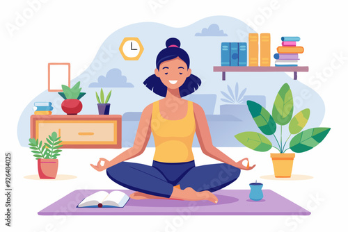 Meditation landing page design, website banner template set, flat vector illustration. Woman meditating sitting in yoga position. Relaxation, harmony, mindfulness.