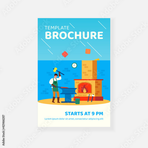 Vector illustration of foundry worker melting metal castings in furnace. Metalworking, founder concept design element in flat style.