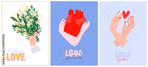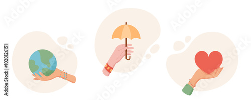 Menstruation not taboo vector. Female health poster with hands holding tampon, pads, hygienic napkin, panty, pills and contraceptives