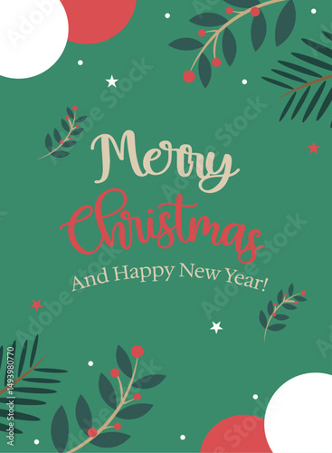 Merry christmas and happy new year background template and banner. Winter holiday vector illustration in vintage style. Christmas tree and toys. 2023 new year hand drawn card.