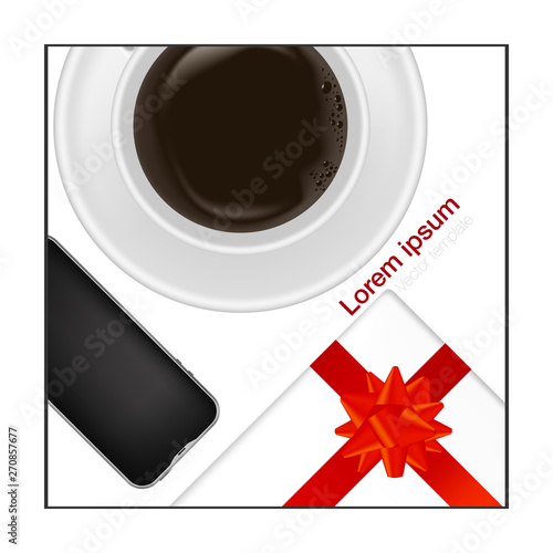 Coffee cup in shape of Christmas tree bauble, vector illustration. Merry Christmas card design template.