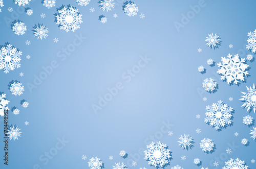 Merry Christmas Happy New Year vector poster design template with beautiful paper cut snowflakes and copy space.
