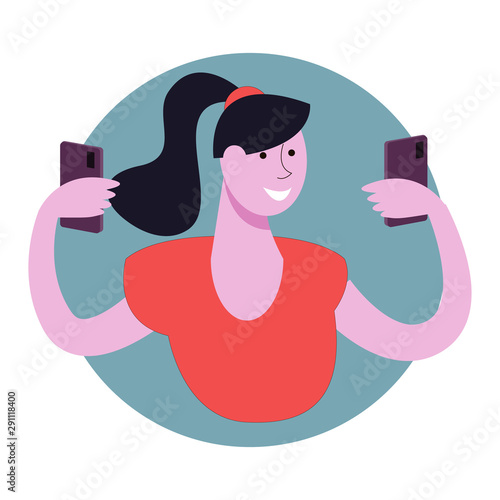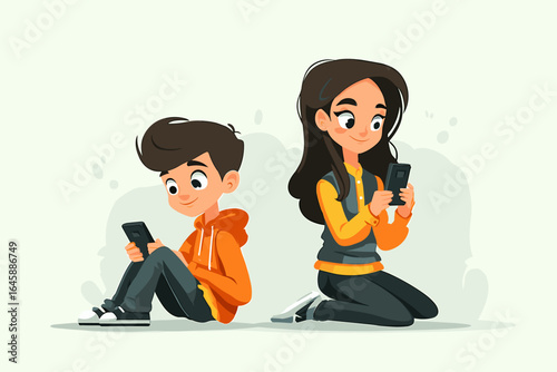 Young happy couple texting love messages via social networking using mobile phones, vector illustration in paper art style. Messenger chat app concept for web banner, website page etc.