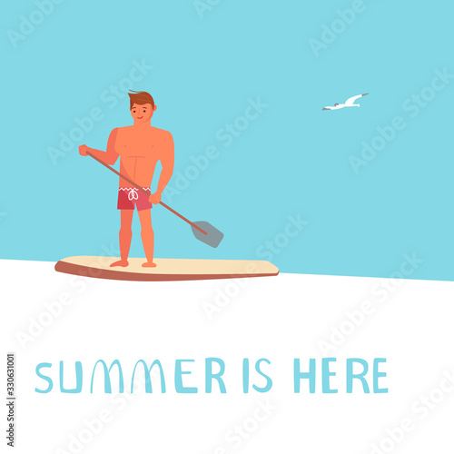 Vector illustration of archaeologist working at archaeological site. Metal detector concept design element in flat style.