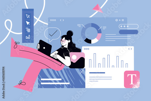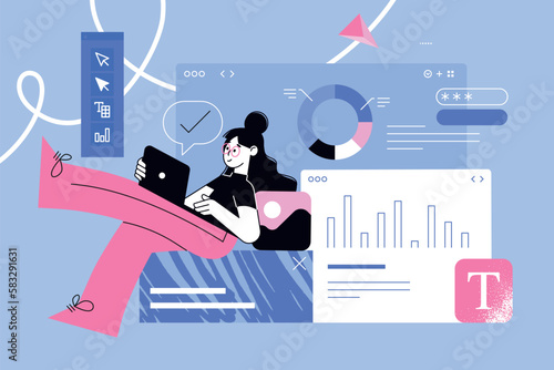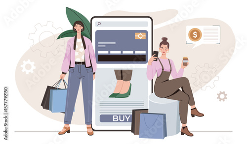 Metal casting process with workers, conveyor belt and robotic arm, vector illustration. Foundry, metalworking, metal production concept for web banner, website page etc.