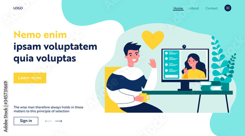 Metaverse flat landing page. Man and woman in VR headset using cyberspace for work, playing game, studying science vector template. Virtual reality and blockchain technology